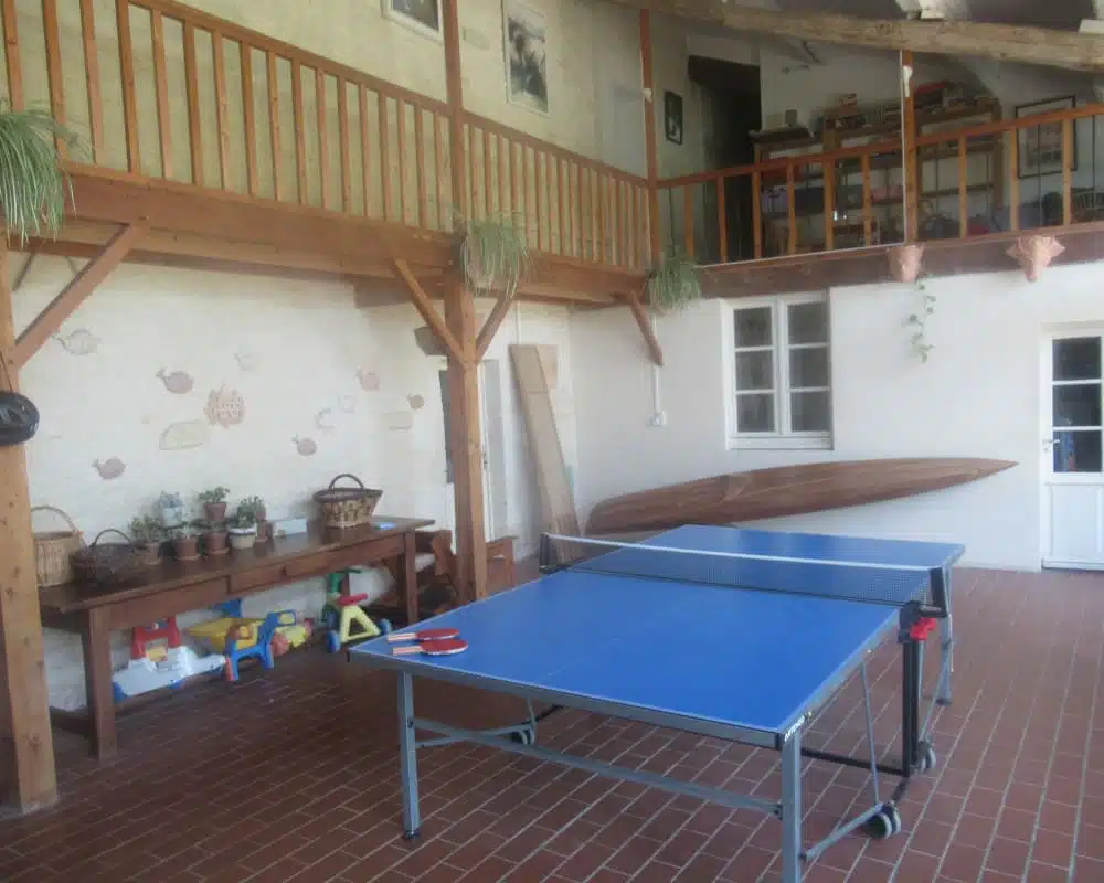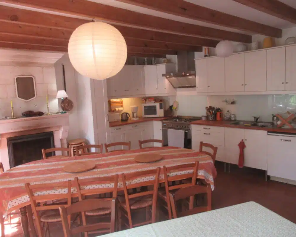 À l’intérieur, les volumes sont généreux et chaleureux : deux grandes pièces de vie avec cheminées, une vaste cuisine entièrement équipée, un salon convivial et un grand hall d’entrée avec table de ping-pong. Les 8 chambres permettent à chacun de disposer de son espace, tandis que les 3 salles de bain et 5 WC assurent un confort optimal pour les séjours en groupe.